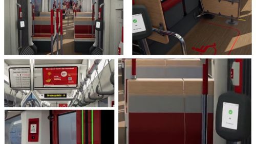 The wheelchair space has been made larger than in the model presented in late 2023 by moving the side shelves closer to the doors. A headrest has been added for the safety of the wheelchair user. The red wheelchair symbol on the floor stands out more. The symbol has been rotated, made larger and moved to the center. In addition, the entry at the doors has been modified, making the floor flatter and easier to access for wheelchair users or traveling with a stroller.