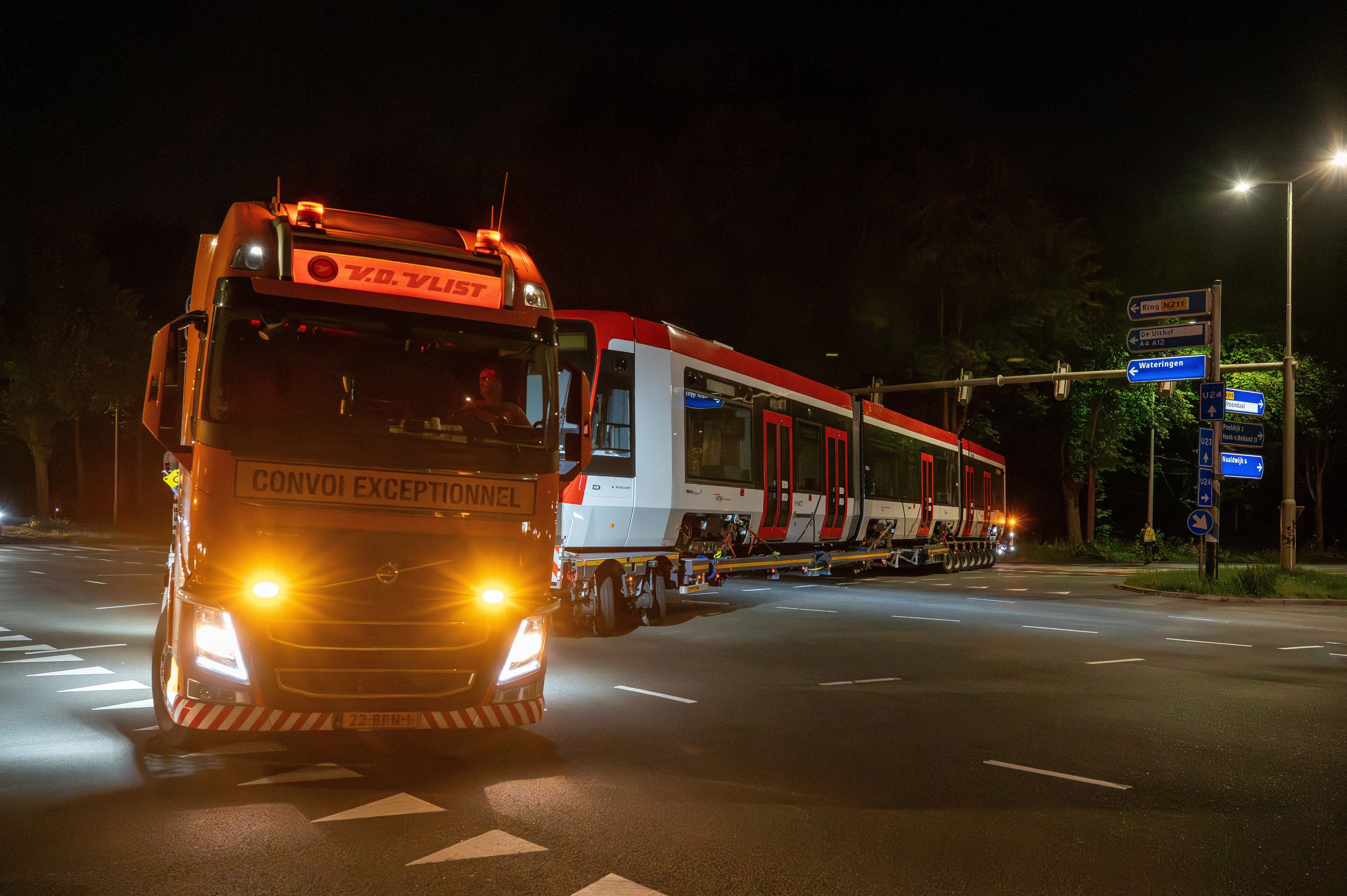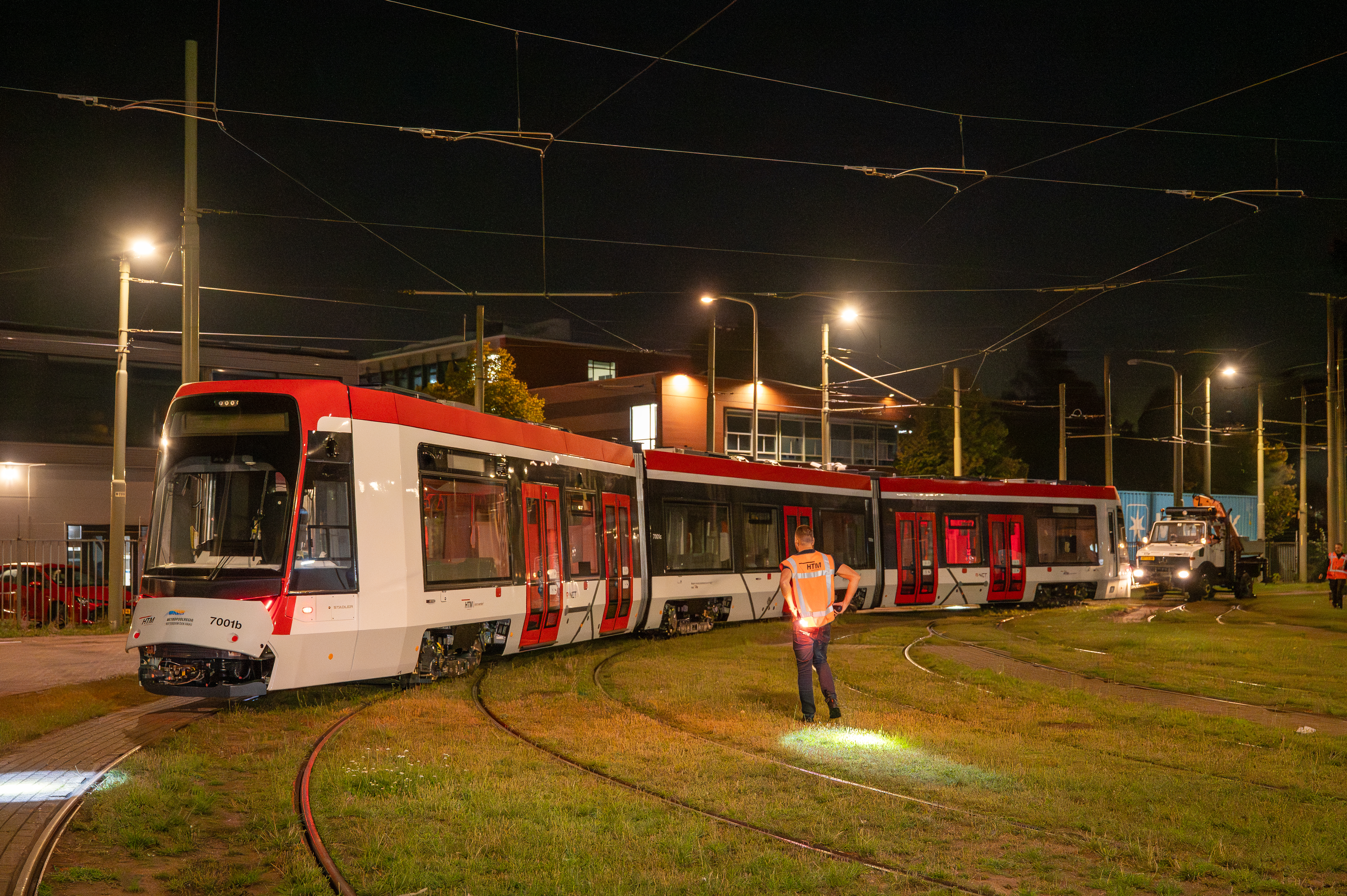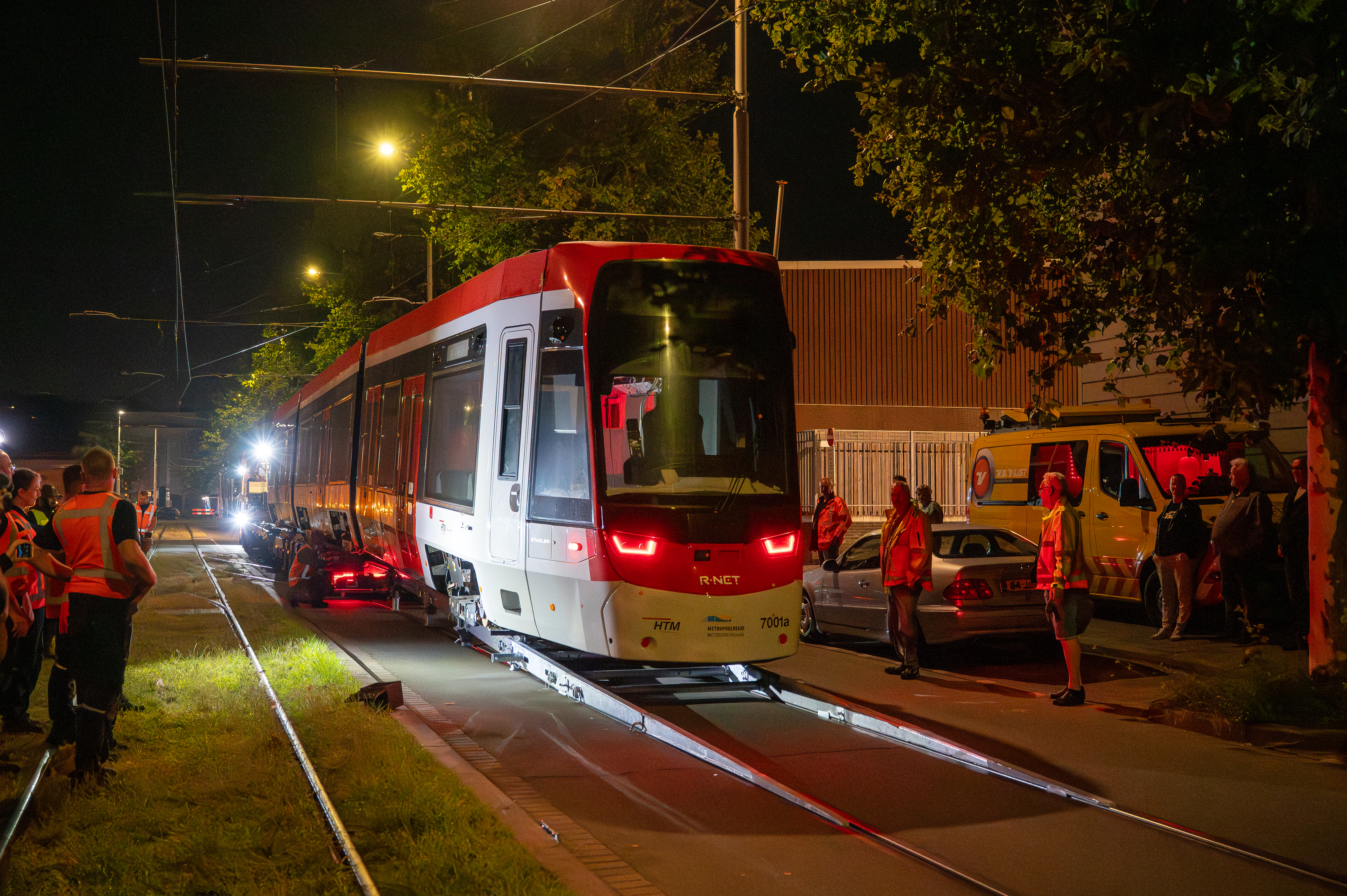 Op vrijdagavond 8 augustus arriveerde de TINA-tram in Den Haag onder grote belangstelling van de vele aanwezigen. Daar werd de TINA op de Werf van de dieplader afgerold en met de UniMog naar het werkspoor van Stadler in de remise van HTM geduwd. Binnenkort start HTM met het testen van de tram. Het uitgebreide test- en toelatingsprogramma zal al met al zo'n jaar in beslag nemen.