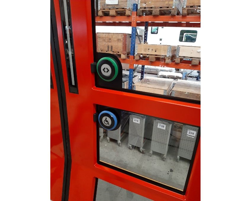 De stopknoppen krijgen een zogeheten functionele verlichting. Drukt iemand tijdens de rit op de stopknop, dan zie je een rode rand oplichten. De stopknoppen op de stangen direct naast de deuren hebben een dubbele functie: het is zowel een stopknop als deur open-knop.